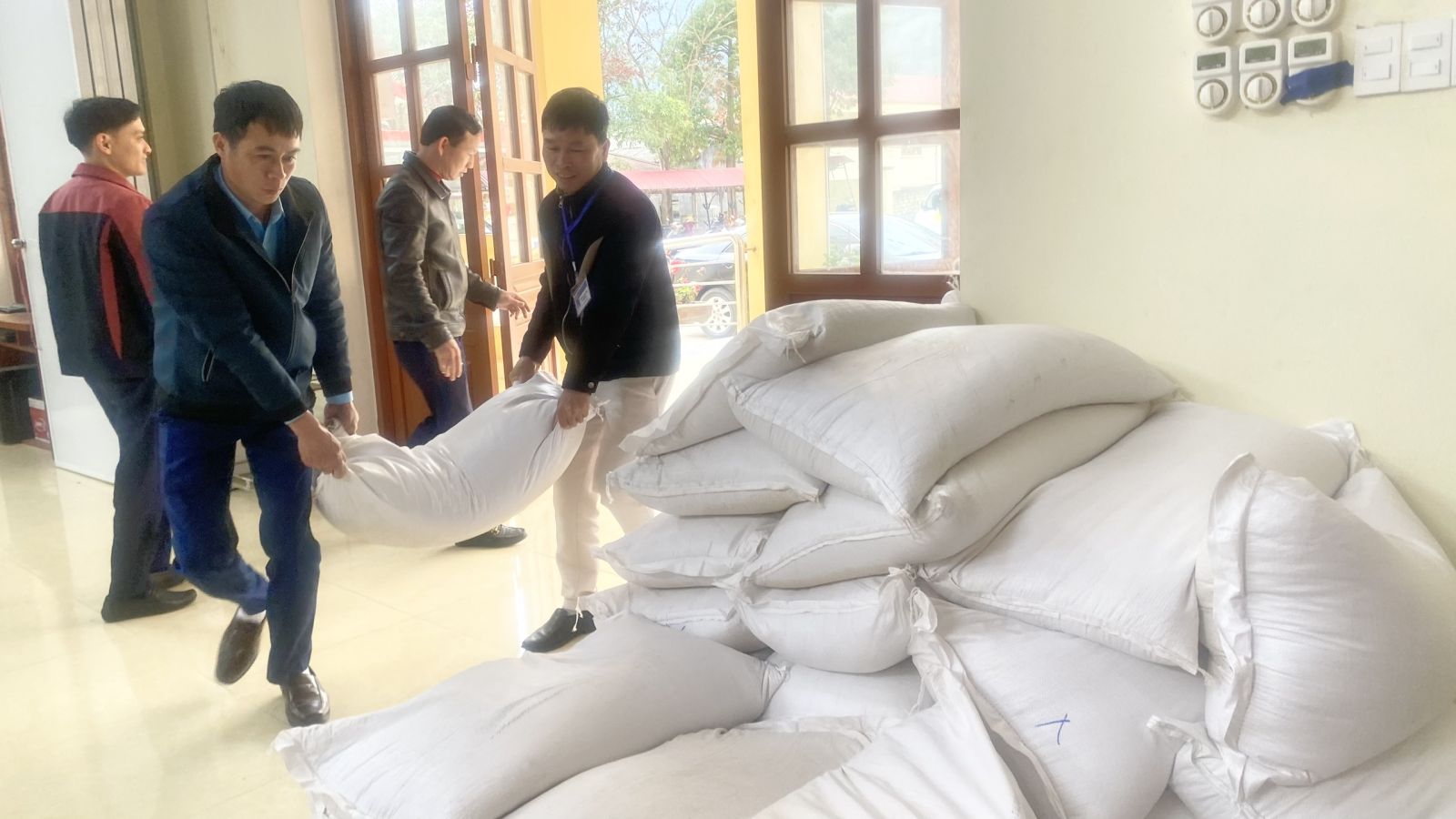 Xã Vũ Lăng tiếp nhận gạo hỗ trợ cho bà con