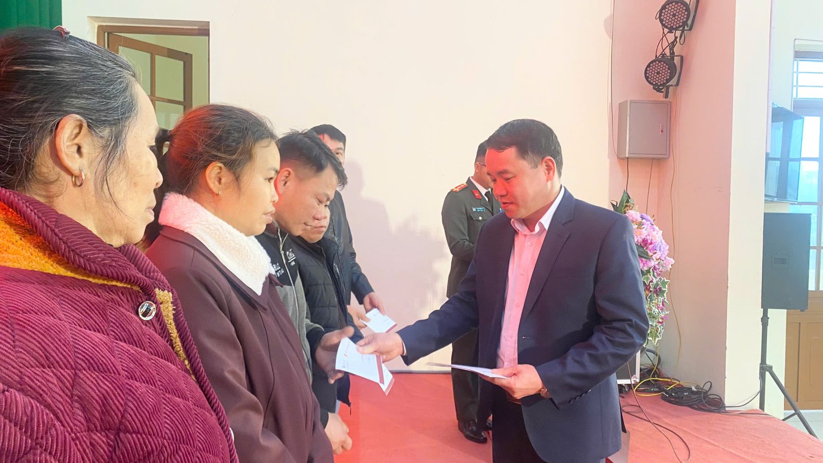 Đại diện lãnh đạo Cơ quan UBKT tỉnh ủy tặng quà cho bà con xã Vũ Lăng