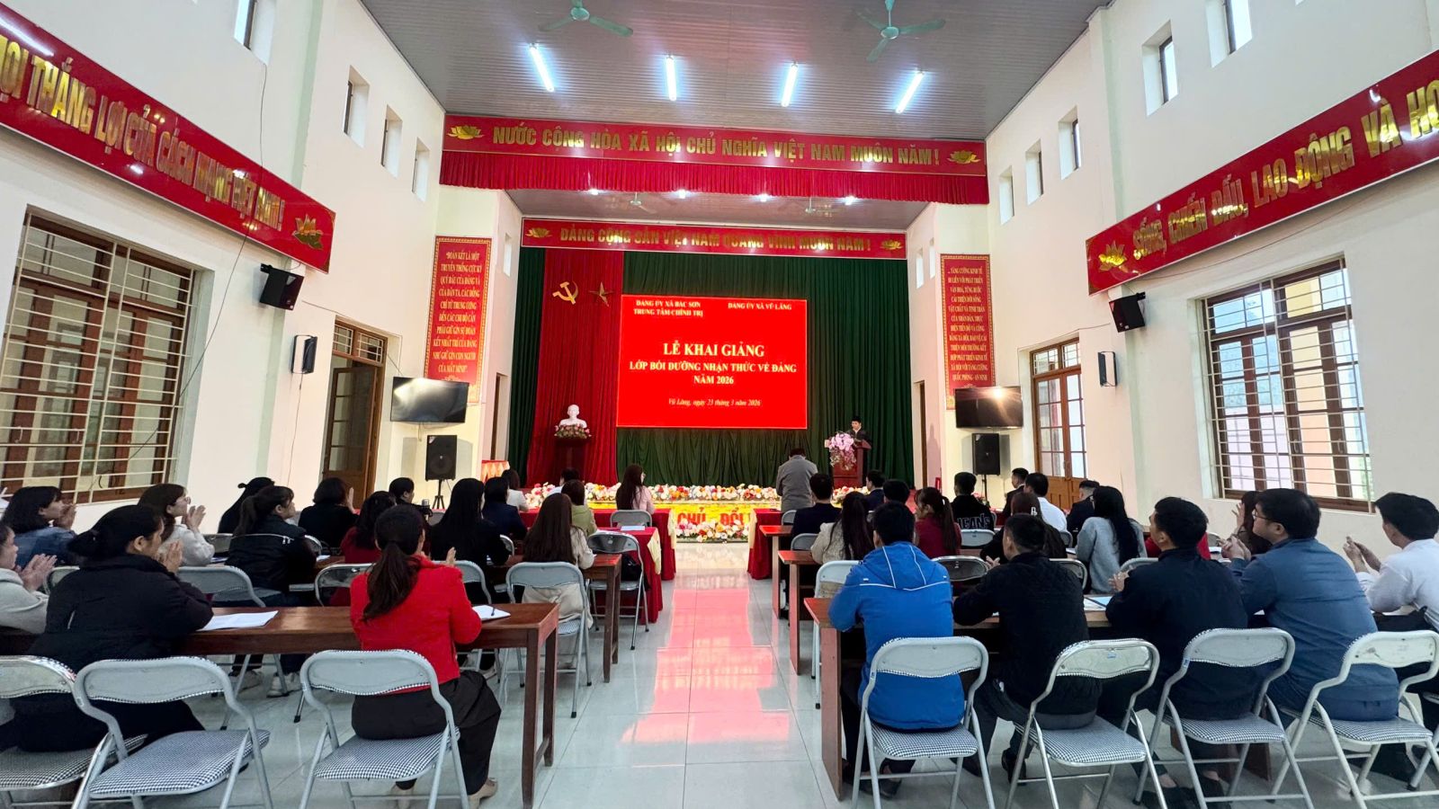 Sáng ngày 23/3/2026, Đảng ủy xã Vũ Lăng phối hợp với Trung tâm Chính trị xã Bắc Sơn tổ chức Khai giảng lớp bồi dưỡng nhận thức về Đảng năm 2026. Dự khai giảng có đồng chí Dương Đức Cường, Phó Bí thư Thường trực Đảng ủy xã; các đồng chí lãnh đạo HĐND, lãnh đạo Ban Xây dựng Đảng, Ủy ban Kiểm tra, UBMTTQ Việt Nam xã.