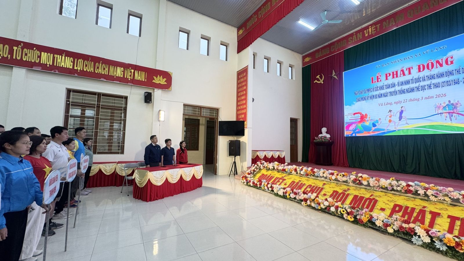 Sáng 22/3/2026, UBND xã Vũ Lăng tổ chức Lễ phát động Ngày chạy Olympic vì sức khỏe toàn dân - vì an ninh Tổ quốc và thiết thực hưởng ứng Tháng hoạt động thể dục, thể thao năm 2026; chào mừng kỷ niệm 80 năm Ngày truyền thống ngành Thể dục thể thao (27/3/1946 – 27/3/2026), thu hút hơn 300 cán bộ, công chức, viên chức, người lao động, lực lượng vũ trang, giáo viên, học sinh và đông đảo Nhân dân trên địa bàn xã tham gia, tạo khí thế sôi nổi, lan tỏa phong trào rèn luyện thể dục thể thao trên địa bàn.